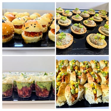Un ensemble de bouchées individuelles pour un cocktail, à l'occasion du festival Jazz de la Petite Pierre