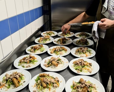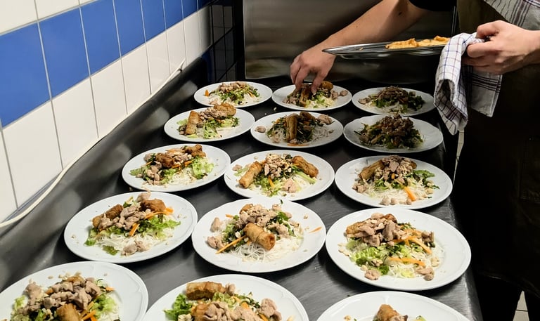 Nous cuisinons directement chez vous, à domicile ou dans la salle que vous avez réservée.